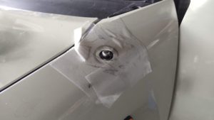 ラシーンはオシャレなクルマのなので、アンテナは左のフロントフェンダーに付いていますこのアンテナ、自動で伸びるのですが戻らなくなりボキっと折れてしまいました。