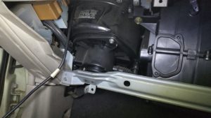 アンテナ自体はボルト一本で簡単に取れますが大変なのは、ここからです。アンテナケーブルが車内の見えない部分でクランプされていて全く抜けてきません。